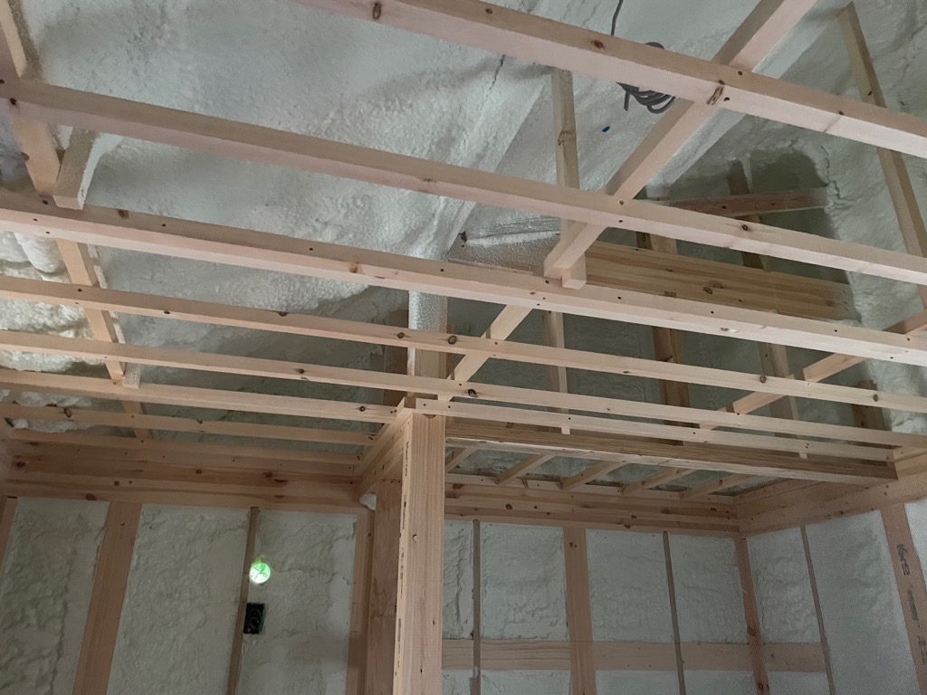 二階天井下地、一階の一部天井下地が完了しましたよー☺️